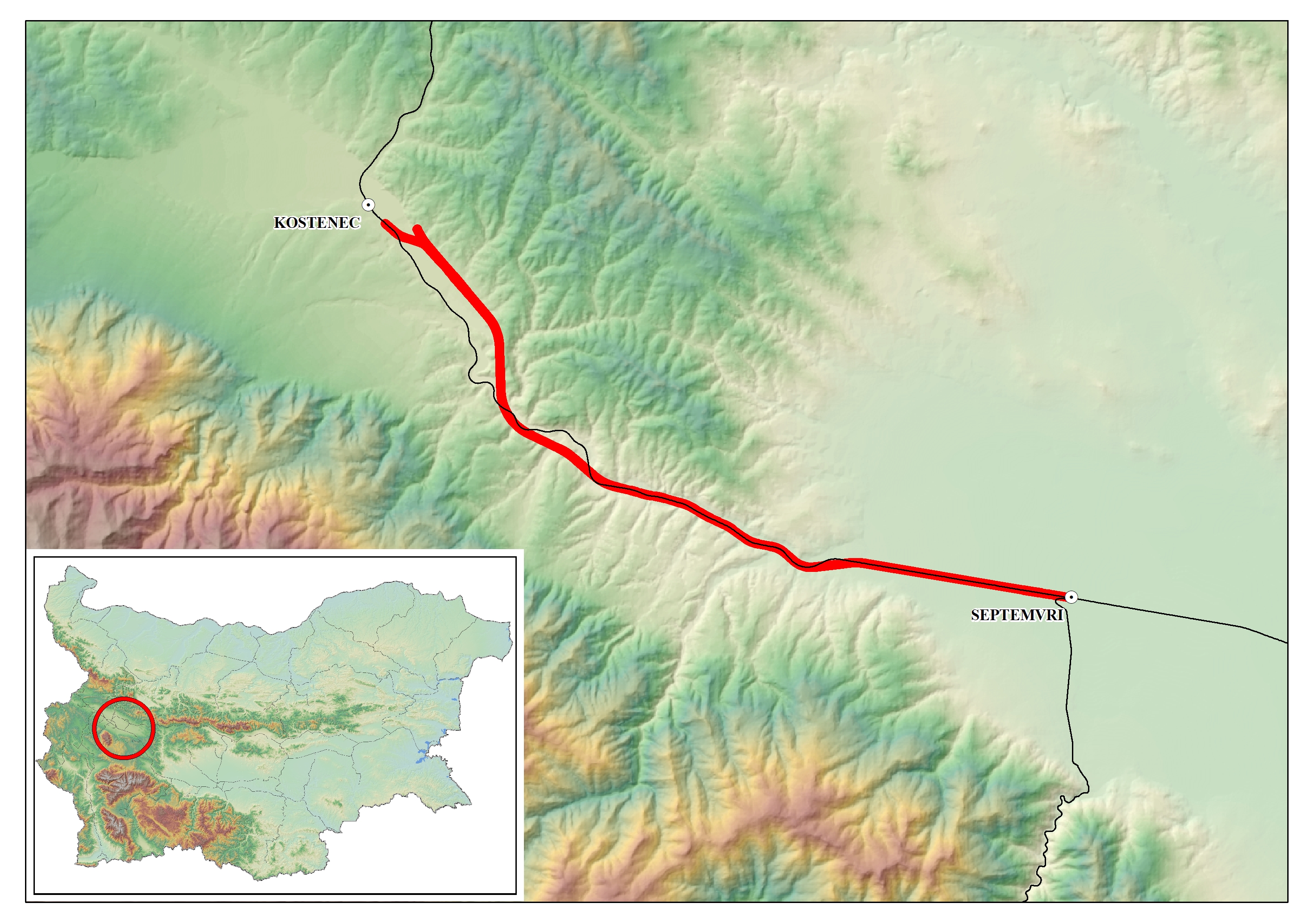 The project is located in Bulgaria on Sofia-Plovdiv railway line Kostenets–Septemvri section and on the Orient-East Med Core Network Corridor. The Action is part of a Global Project "Modernisation of the railway line Sofia-Septemvri'' which is part of the Sofia–Plovdiv railway line, an important element of the Trans-European Transport Core network corridors.